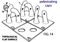 An (PURPLE) EVENT is like a discrete island or monopole that acts to the observer AS an independent FREQUENCY : a PARTICLE (photon, electron,...)/WAVE, an IDEA/KNOWLEDGE, a TONE ... or a bundle of frequencies (nuclei, atom, molecule, human). But in essence an event is restructured geometry. It's topological expression is shown at the left. All events lay thus on the 'two sides' of the brane, like condensates, and by the total movements of the system excitement is generated BETWEEN peaks and/or events - AND INSIDE peaks and or events - which brings us the "local" friction, temperature, oscillation, resonance, polarity, .... thus including phenomena such as called "scalar fields/waves".